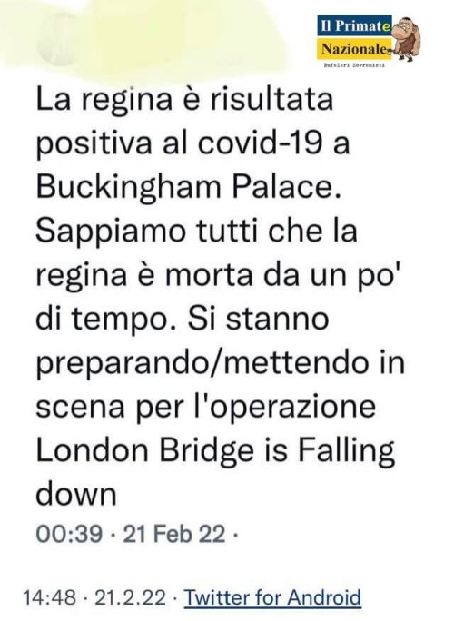 La tv di stato russa dà la colpa alla regina Elisabetta per la guerra in Ucraina: «Vuole distrarre dagli scandali di corte»Lo dice un certo dmitry kiselyov (definito "il portavoce di putin"), probabilmente si era scolato anche lui un po' di bottiglie. Torniamo a ben