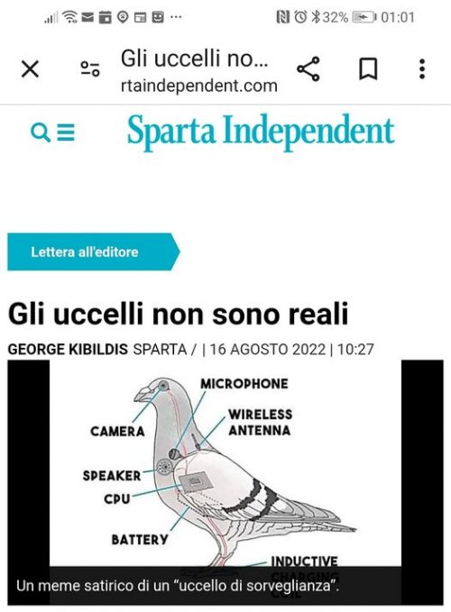 Per finire gli uccelli non sono reali. La storia la potete leggere su bufale.net